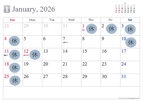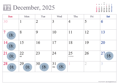 2025年12月27日(土)より2026年1月4日(日)までの間