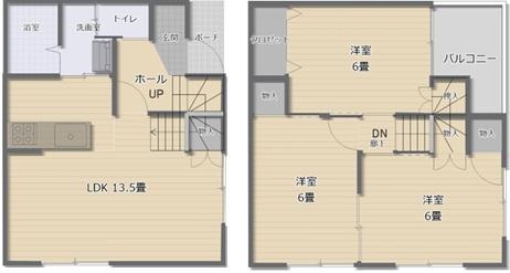 | 間取内訳 | 1F:13.5LDK 2F:6洋×3 |